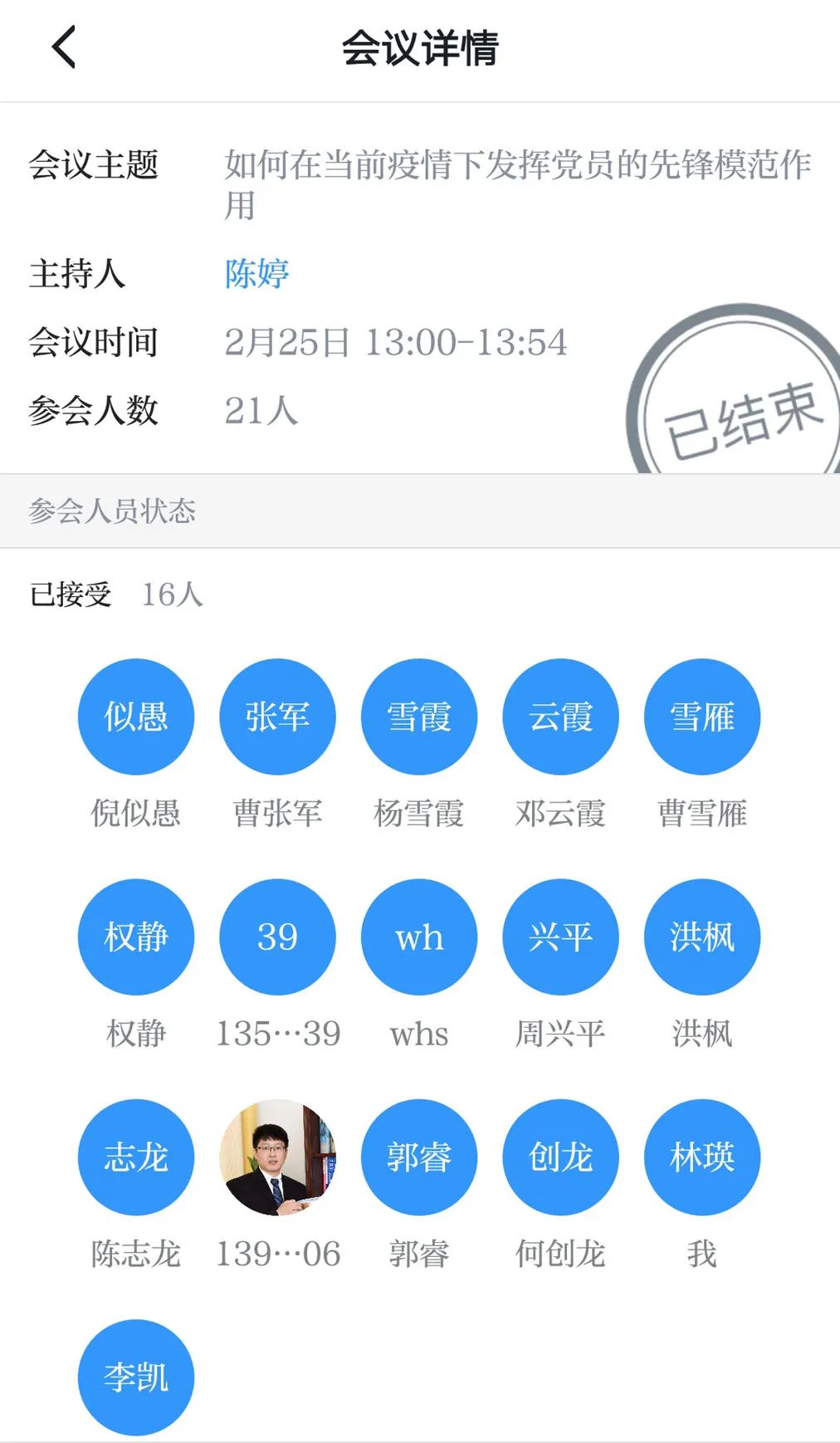 尽管党支部委员们(张云龙、林瑛)提前熟悉并测试了视频会议,但第一次尝试多人视频会议,偶有小插曲,比如部分党员教师无法接受邀请、莫名掉线等。但会后大家纷纷表示,召开视频会议,方式新颖便捷,大家“面对面”的交流,效果也非常好,做到了自我防护与工作开展两不误。
