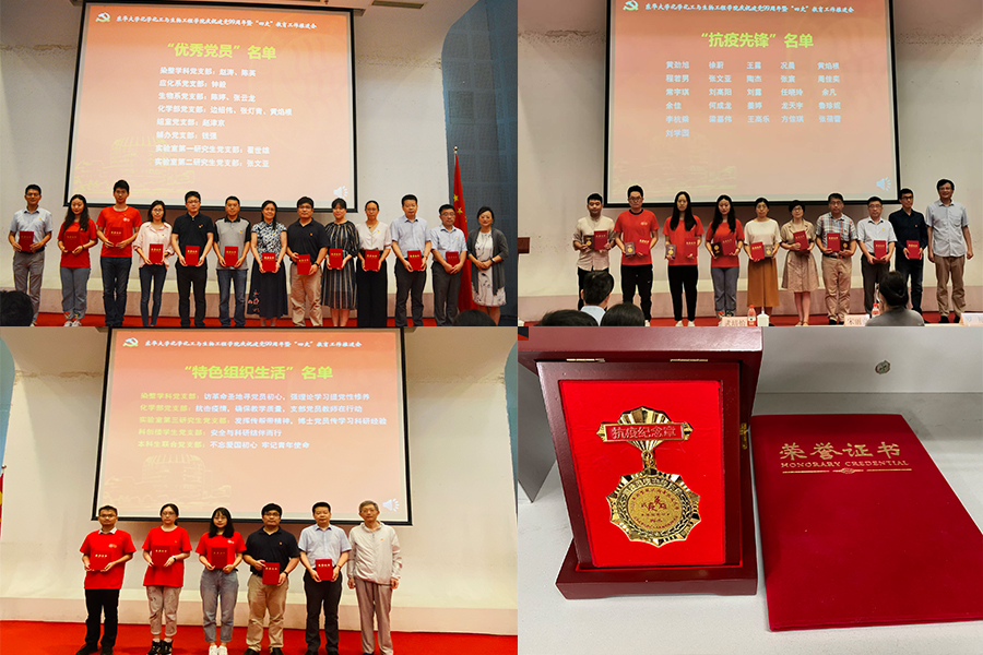过去一年中,化工生物学院基层党组织和广大党员在学校党委的领导下,进一步深入学习贯彻习近平新时代中国特色社会主义思想,扎实开展“不忘初心、牢记使命”主题教育,开拓进取,扎实工作,在疫情防控中勇于担当,尽己所能,尽己所学,涌现出了一批优秀的集体和个人。为激励全院共产党员和党组织在建设“奋进东华”中更好地发挥先锋模范作用和战斗堡垒作用,会议对本年度表现突出的师生党员进行了表彰,30名师生党员荣获优秀党员荣誉称号,26名师生荣获抗疫先锋荣誉称号,5个党支部荣获“特色组织生活”称号。