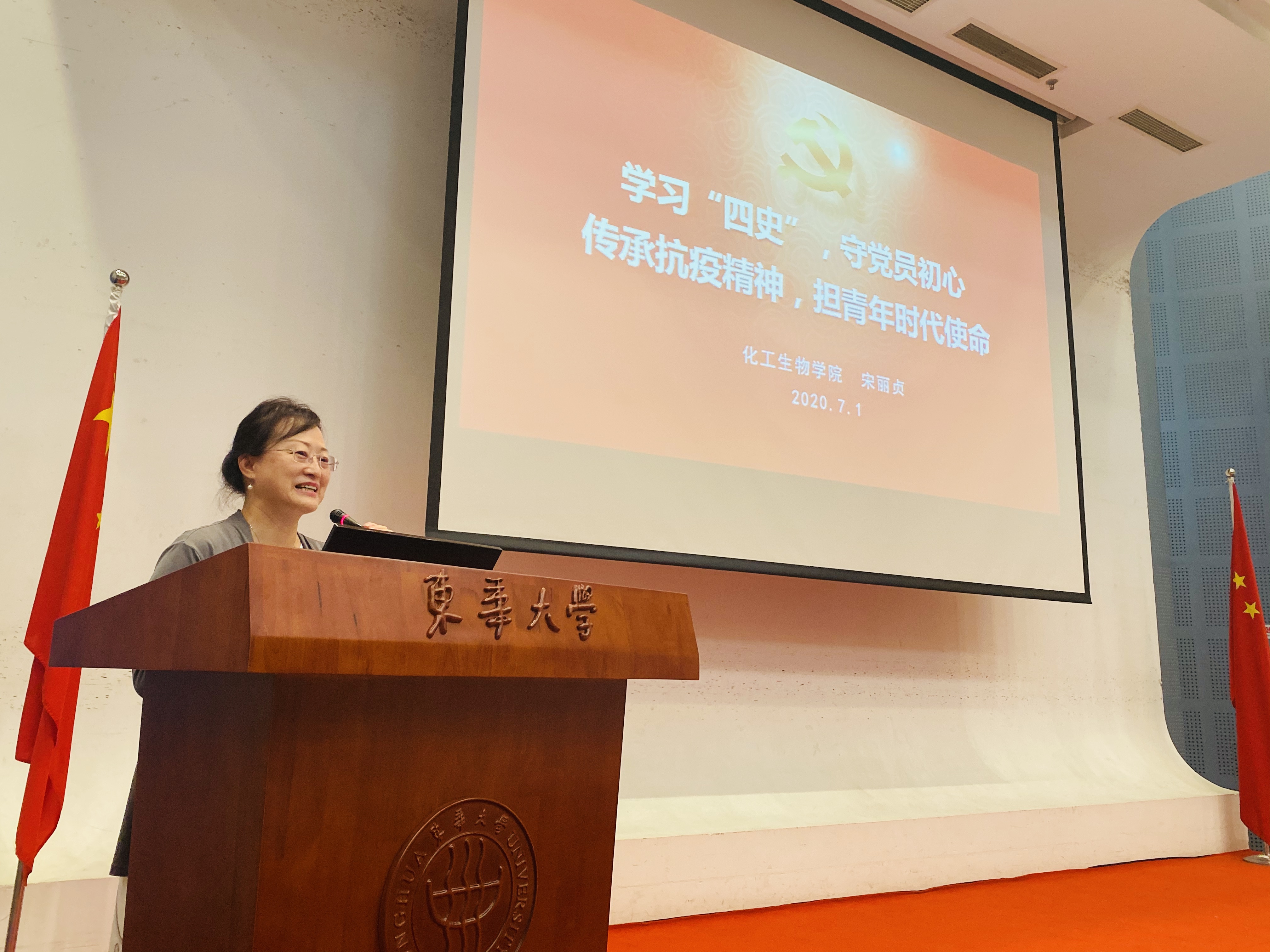 九十九年风雨兼程,九十九年坚定向前。永远向前、永恒奋斗,丰厚着我们党的精神宝库;坚定信仰、坚强信念,绘就了党员的精神底色。71日上午,化学化工与生物工程学院师生党员在图文信息中心第二报告厅齐聚一堂,举行“守初心•担使命•强阵地”庆祝建党99周年暨“四史”教育工作推进会,庆祝党的生日。学院党委书记宋丽贞,党委副书记、院长武培怡,党委委员、副院长赵涛,党委委员、副院长黄焰根,党委委员、工会主席罗艳,学院特邀党建组织员盛季陶出席会议。参加现场会议的还有学院师生党员和部分优秀教师代表,会议同步在线上直播。钱强主持会议。