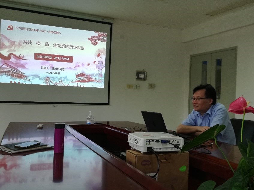2020714日化学化工与生物工程学院生物工程系支部以“迎党的生日、讲战疫故事、悟初心使命”为主题开展微党课组织生活会。学院院长、党委副书记武培怡及生物工程系支部全体党员参加微党课组织生活会。
