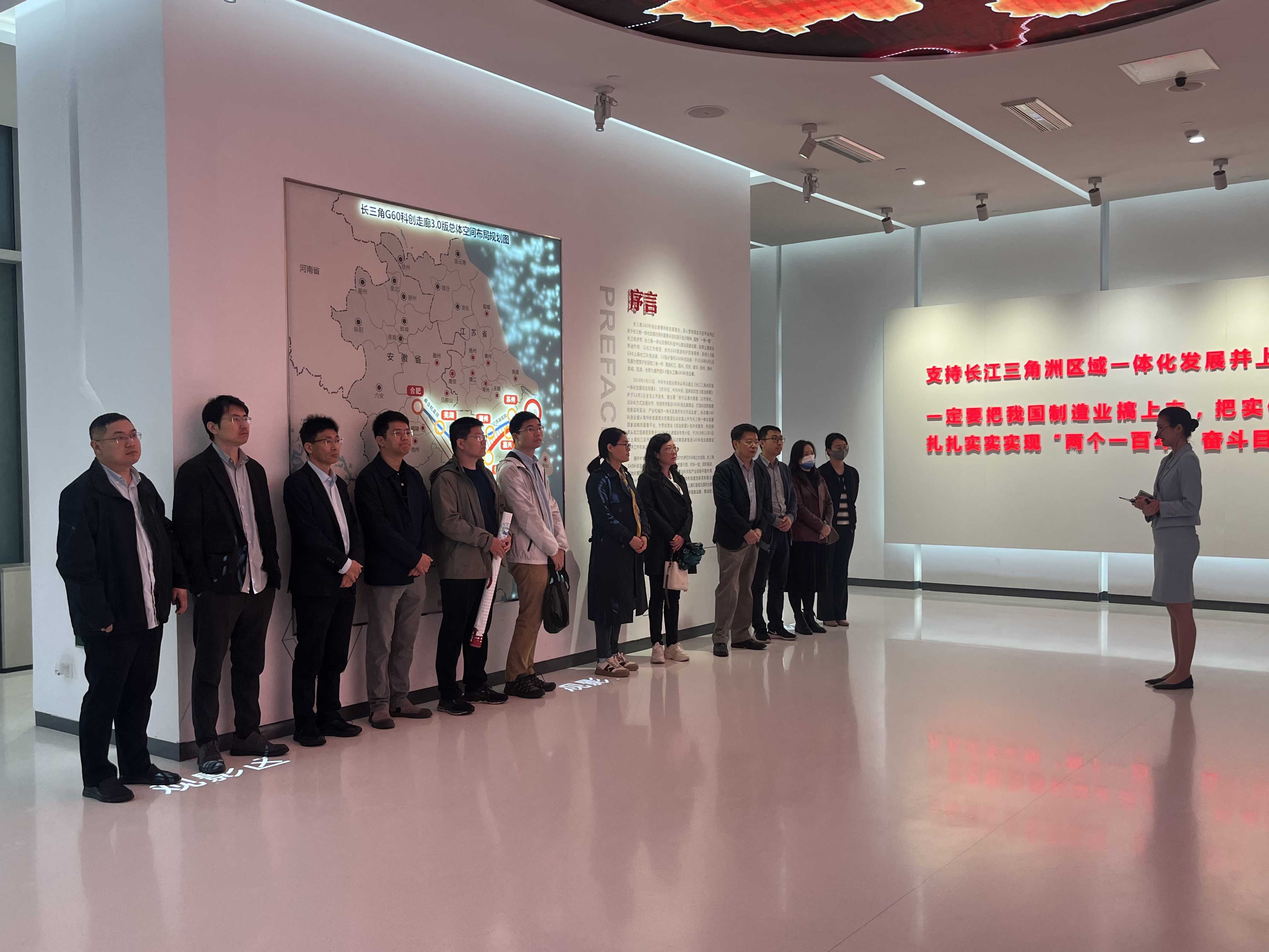 暗网 尚实论坛青年教师培训班(三期)一行首先参观长三角G60科创走廊规划展示馆。通过观看长三角G60科创走廊专题片,了解走廊建设总体发展规划、发展历程、战略及功能定位、跨区域协同发展等情况。重点了解生物医药、人工智能和新材料等一批重点项目和产业链在长三角G60科创走廊的发展状况。